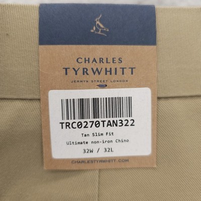 NWT CHARLES TYRWHITT Tan Slim Fit Ultimate Non-Iron Chino Pants 32x32