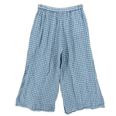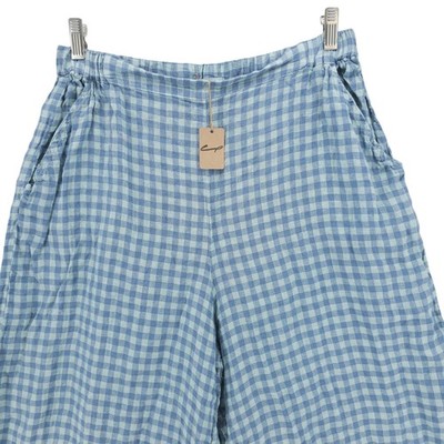 NWT CP SHADES Wendy Crop Wide Leg Pants 100% Linen Blue Check Size XL