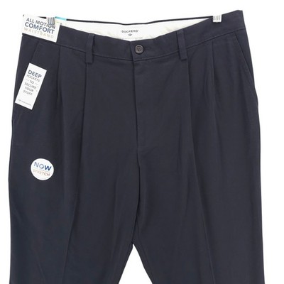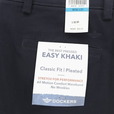 NWT DOCKERS Navy Blue Easy Khaki Classic Fit Pleated Comfort Waistband 36x31