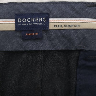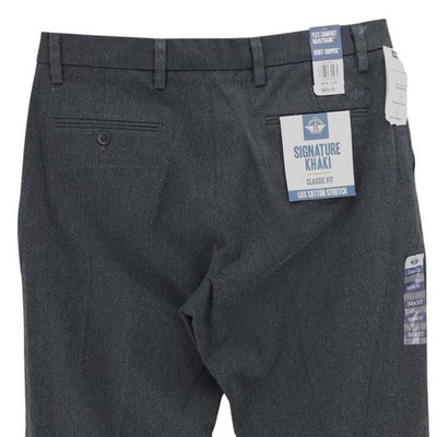 DOCKERS SIGNATURE KHAKI LUX COTTON STRETCH CLASSIC FIT PANTS - FLEX COMFORT WAISTBAND - SHIRT GRIPPER - DARK GRAY