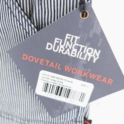 NWT DOVETAIL WORKWEAR Freshley Overall Indigo Stripe Utility Size 4 x 28 Inseam