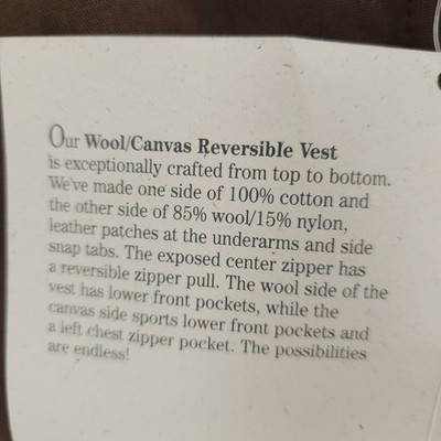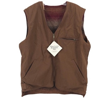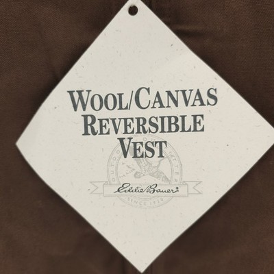 NEW DEADSTOCK EDDIE BAUER WOOL/CANVAS REVERSIBLE VEST w/ LEATHER TRIM