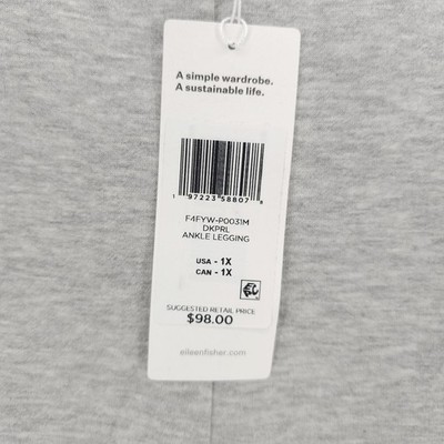 NWT EILEEN FISHER Ankle Legging Cozy Brushed Terry Hug Gray Heather DKPRL Sz 1X