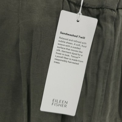 NWT EILEEN FISHER High Waisted F/L Pants Wide Leg GRVE Olive Green PETITE MEDIUM