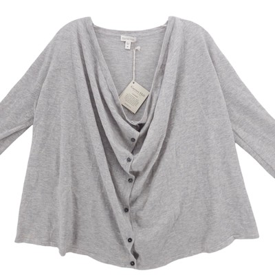NWT GARNET HILL 100% 2-Ply Cashmere Drape Front Cardigna Heather Gray MEDIUM