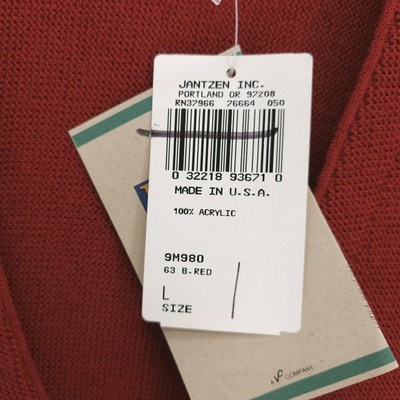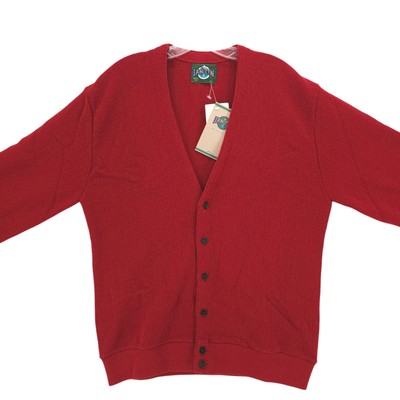 NWT JANTZEN Lucky Links Cardigan Red Acrylic MADE IN USA Vintage NOS Size LARGE