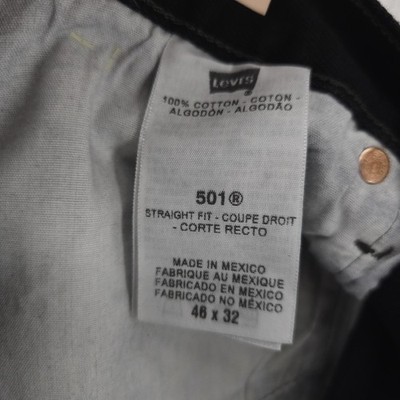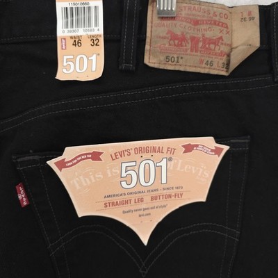 NWT LEVIS 501 Black Jeans Original Fit Straight Leg Button Fly 100% Cotton 46x32