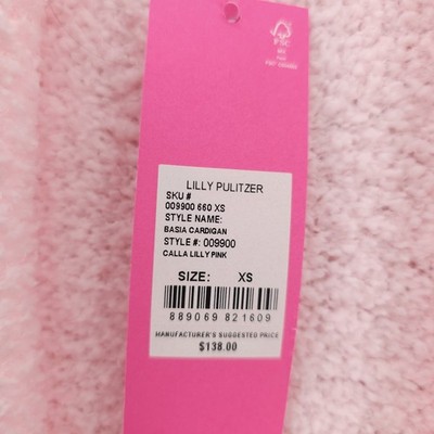 NWT LILLY PULITZER Basia Cardigan Calla Lilly Pink Plush Open Front XS
