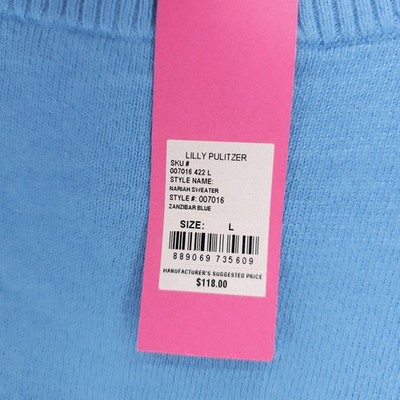NWT LILLY PULITZER Nariah Sweater Zanzibar Blue Soft Tie Waist LARGE