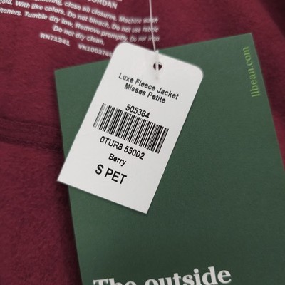 NWT LL BEAN Luxe Fleece Jacket Full Zip BERRY Misses Petite SMALL