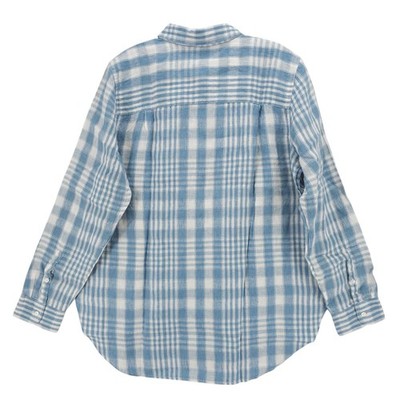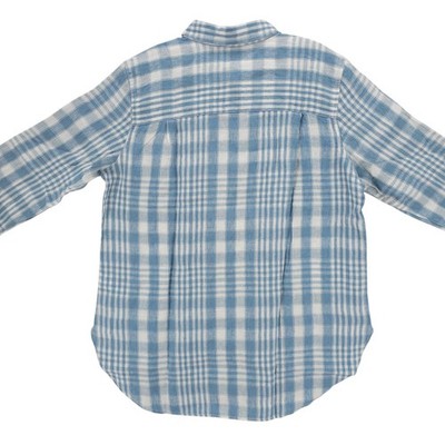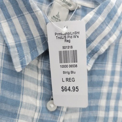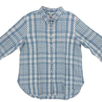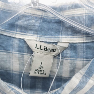 NWT LL BEAN Women's 100% Linen Blue Plaid Shirt Tunic Size LARGE