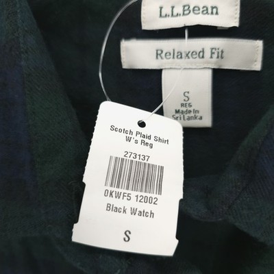 NWT LL BEAN Womens Scotch Plaid Flannel Shirt Black Watch Relaxed Fit SMALL