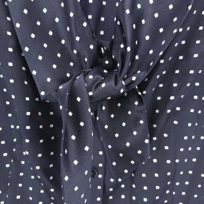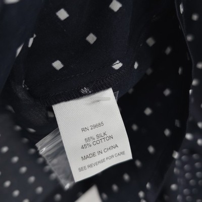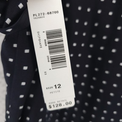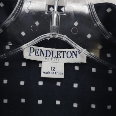 NWT PENDLETON Navy Blue White Dot Silk Blend Blouse Neck Tie PETITE 12