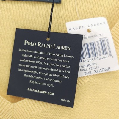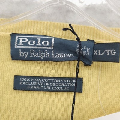 NWT POLO RALPH LAUREN Yellow 100% 2-Ply Pima Cotton V-Neck Sweater Pony Logo XL
