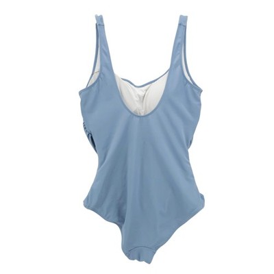 NWT SHAPELLX Swimsuit One-Piece Shaping Swimwear Blue Ruched Sides LARGE