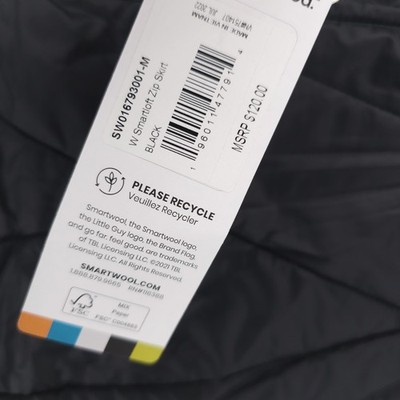 NWT SMARTWOOL Smartloft Zip Skirt Solid Black Quilted Size MEDIUM