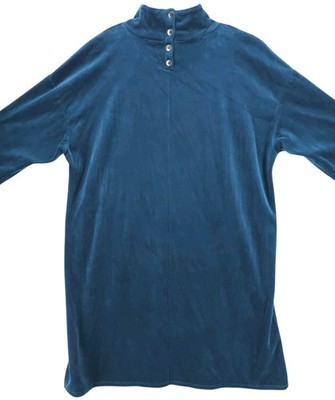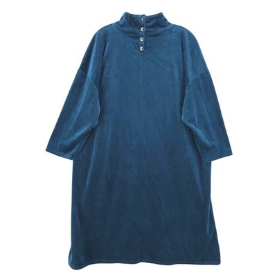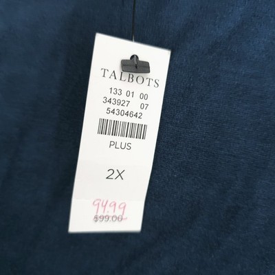 NWT TALBOTS Blue Velvet Dress 3/4 Sleeve Cotton Stretch Button Detail Size 2X