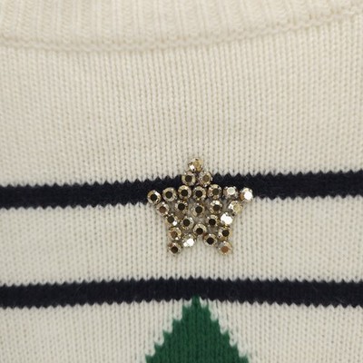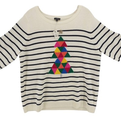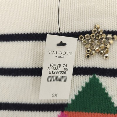 NWT TALBOTS Rainbow Christmas Tree Sweater Striped Rhinestone Button Detail 2X