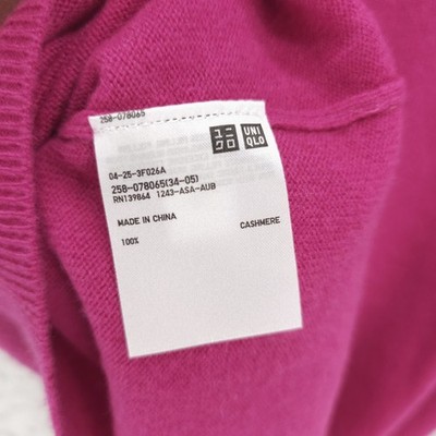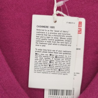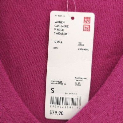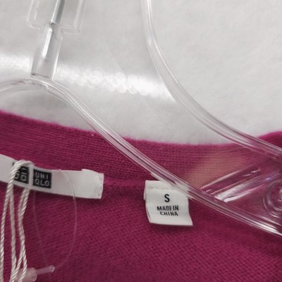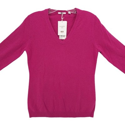 NWT UNIQLO Hot Pink 100% Cashmere V-Neck Sweater Soft Women's SMALL