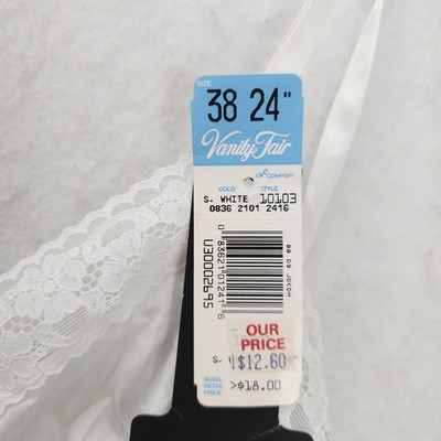 NWT VANITY FAIR White Slip Lace Trim Smooth Satiny Nylon VINTAGE Size 38 - 24"