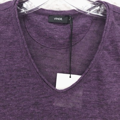 NWT VINCE Men's 100% Linen Tee T-Shirt V-Neck Heather Purple Size LARGE