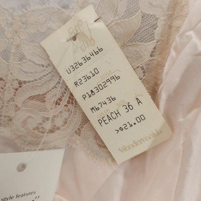 NWT WONDERMAID Slip Fine Lace Trim PEACH Antron Satin Non Cling Size 36