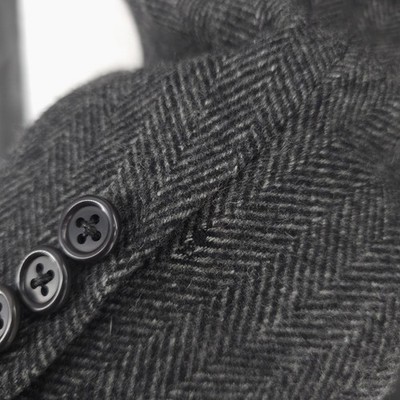 OXXFORD CLOTHES Pure Cashmere Barrington Coat Gray Herringbone Size 40