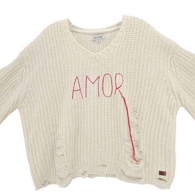 PEACE LOVE WORLD AMOR OVERSIZED CHUNKY KNIT DISTRESSED SWEATER