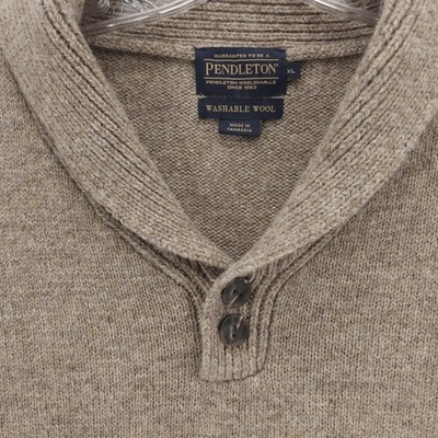 PENDLETON 100% Shetland Wool Shawl Neck Sweater Brown Washable Men's XL