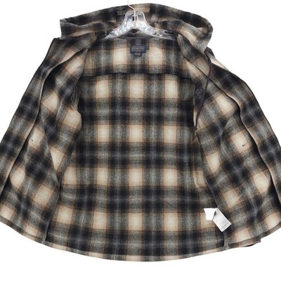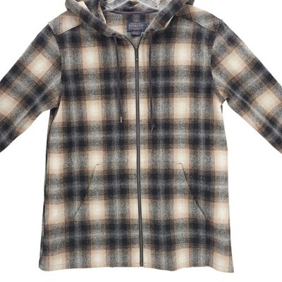 PENDLETON Women's Boyfriend 100% Wool Zip Hoodie Shacket Plaid EUC Size SMALL