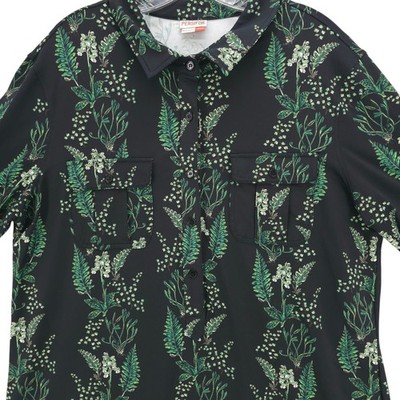 PERSIFOR Winpenny Shirt Dress Black Green Floral Stretch MADE IN USA Size XXL