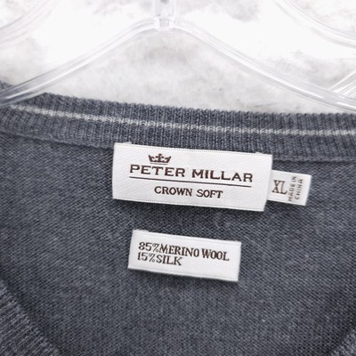 PETER MILLAR Crown Soft Merino Wool Silk V-Neck Sweater Men's Gray Size XL