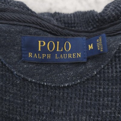 POLO RALPH LAUREN Hooded Vest Waffle Lined Sweat Knit Blue Gray Heather MEDIUM