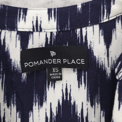 POMANDER PLACE Tuckernuck Kenzo Dress Navy Blue Ikat Tiered Size XS