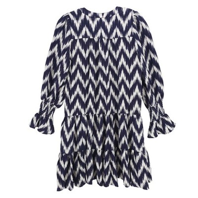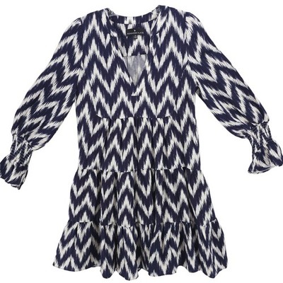 POMANDER PLACE TUCKERNUCK KENZO DRESS - NAVY BLUE IKAT PATTERN