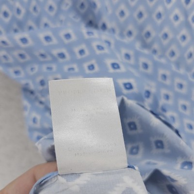 PROPER CLOTH Albiate Printed Camp Shirt Sky Blue Block Print Poplin Est. Size XL