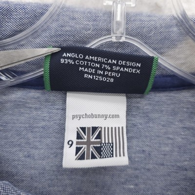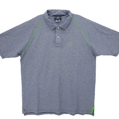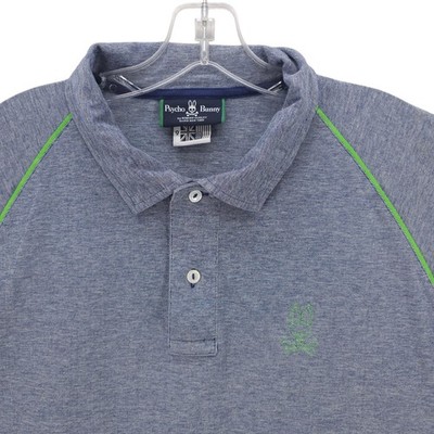 PSYCHO BUNNY Raglan Polo Shirt Blue Cotton Blend Neon Green Trim Size 9 - 3XL