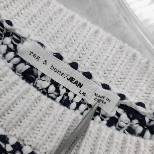 Rag & Bone Blue White Boucle Sweater Textured Knit Hi-Lo Boxy Cut Size LARGE
