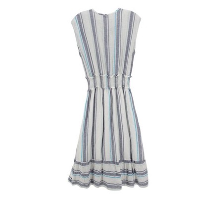 RAILS Ashlyn Dress Smocked Sleeveless Linen Blend Aegean Blue Stripe Size XS