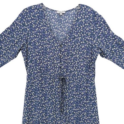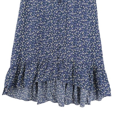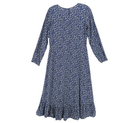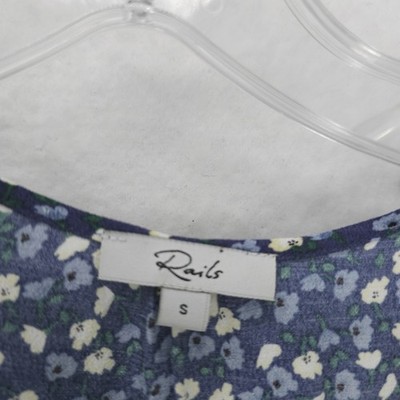 RAILS Jade Navy Ditsy Floral Midi Shirt Dress Hi Lo Tiered Ruffle Hem Size SMALL