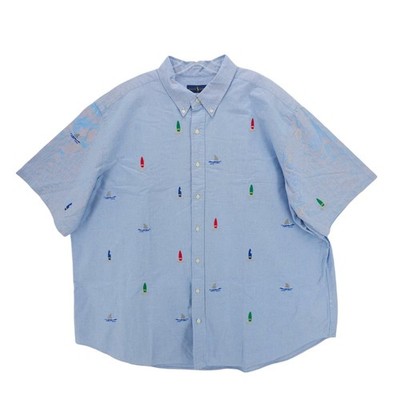 RALPH LAUREN Blue Embroidered Short Sleeve Shirt 100% Cotton Nautical Boat 3XB