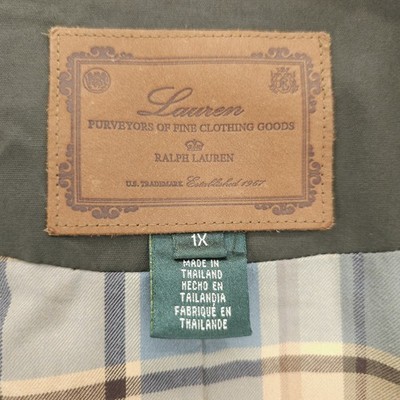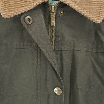 RALPH LAUREN Green Waxed Cotton Jacket Corduroy Collar Utility Barn Women's 1X