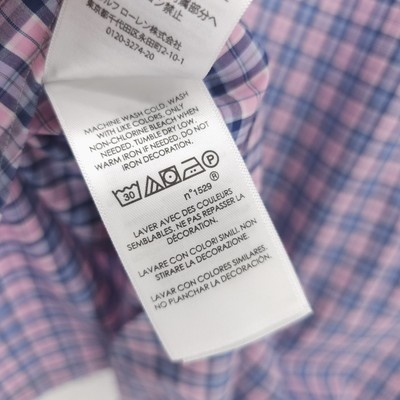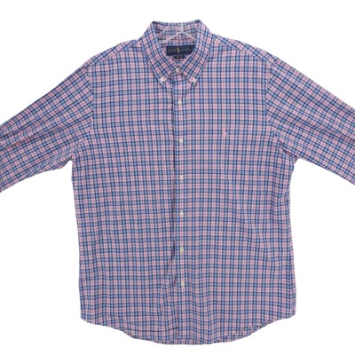 RALPH LAUREN Mens 4D Stretch Poplin Pink Blue Plaid Classic Fit SIZE Large 16.5