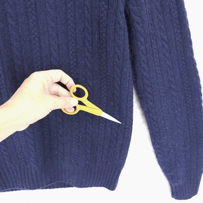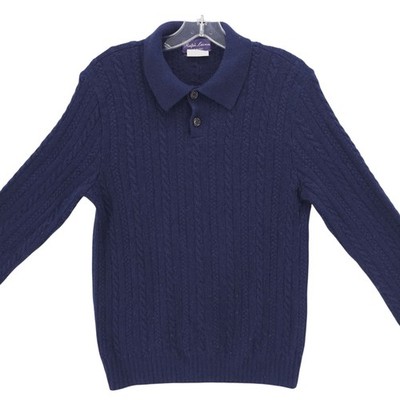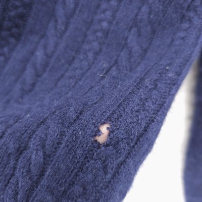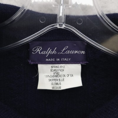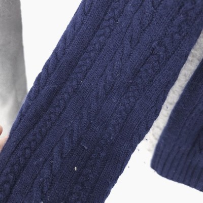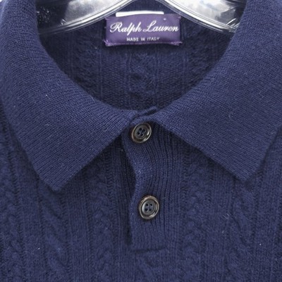 RALPH LAUREN Purple Label Cashmere Cable Knit Sweater Skipper Blue MEDIUM FLAWS!
