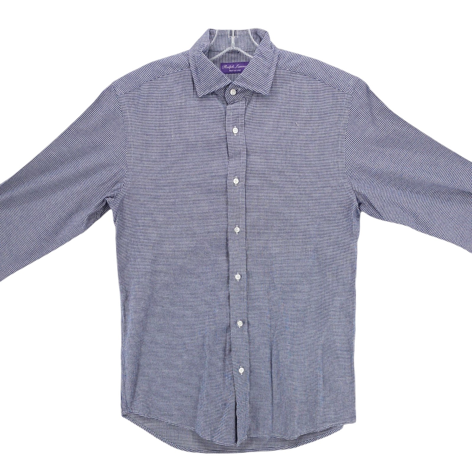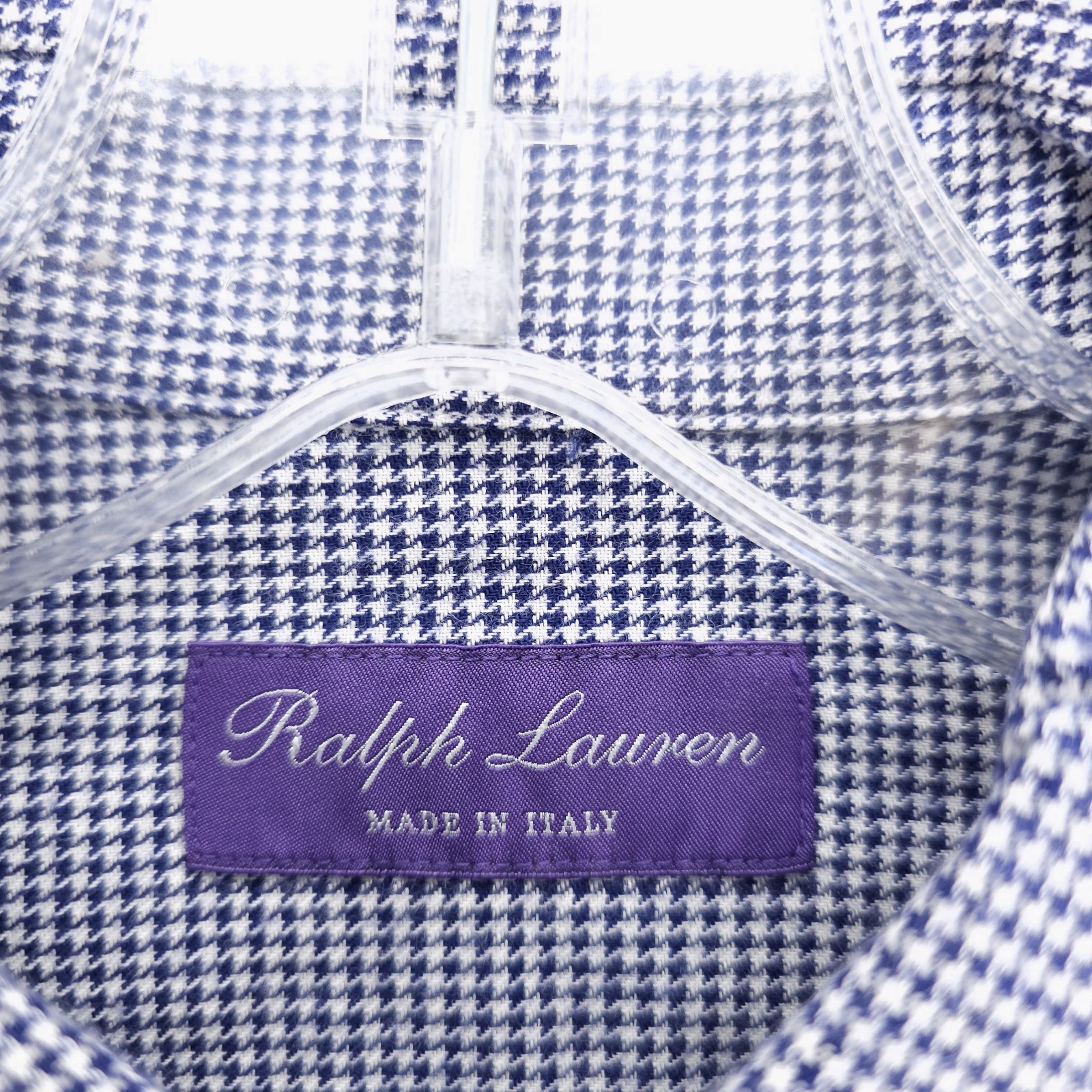 RALPH LAUREN PURPLE LABEL Huondstooth Button Up Shirt Made in Italy EUC Size 15