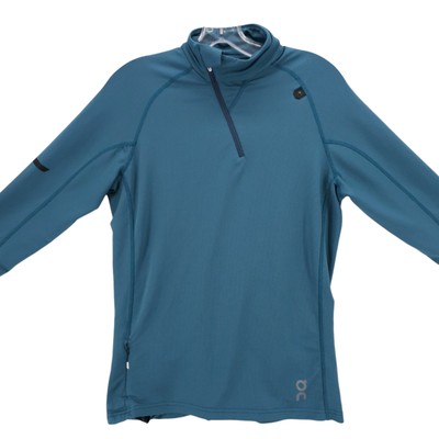 RUN ON CLOUDS Women's Clima Shirt Teal Blue 1/4 Zip Stretch Thumbhole Size LARGE
