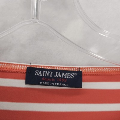SAINT JAMES Phare Tunic Top Orange White Stripe Slits 3/4 Sleeve Estimated Sz 10