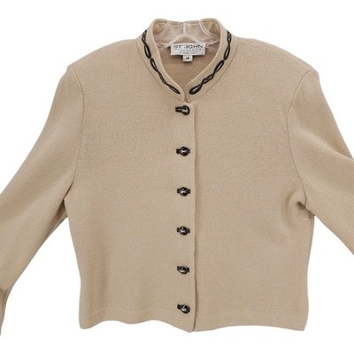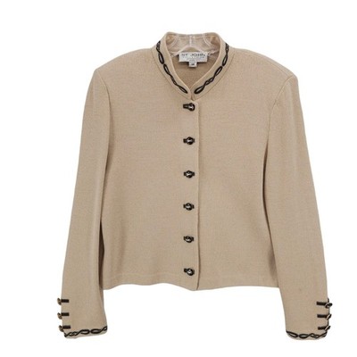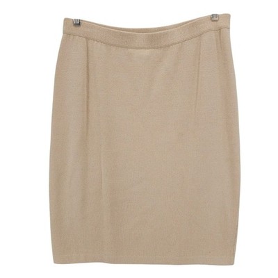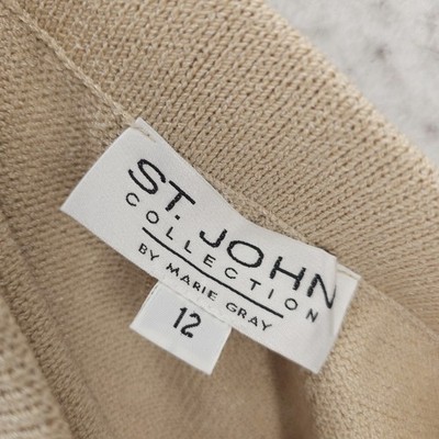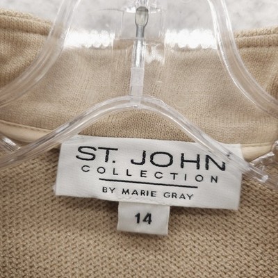 ST JOHN 2- Piece Skirt Jacket Set Vintage Beige Santana Knit Size 12/14 - READ!