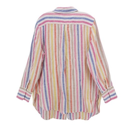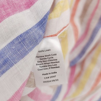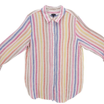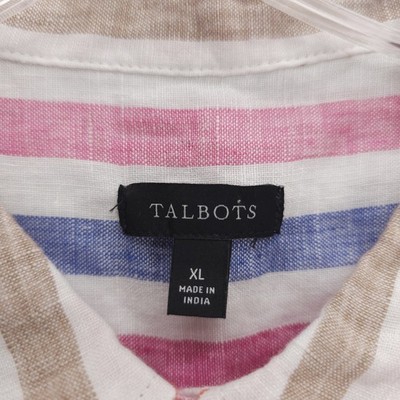 TALBOTS 100% Linen Shirt Long Sleeve Striped Colorful Size XL