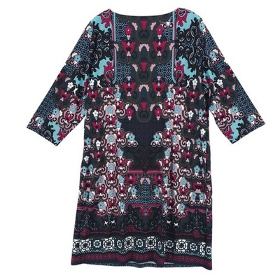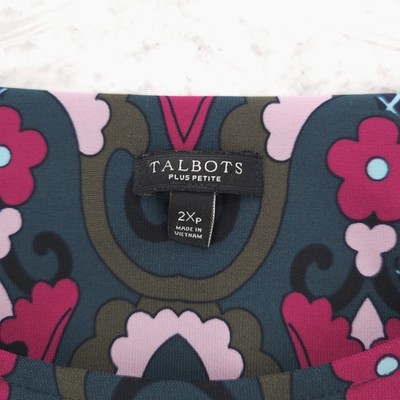 TALBOTS Dress 3/4 Sleeve Stretch Jersey Sheath Colorful Paisley Geometric 2XP